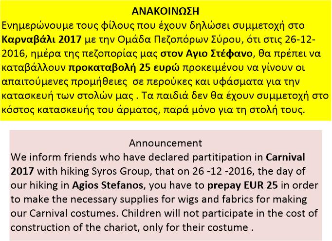 ΑΝΑΚΟΙΝΩΣΗ για το ΚΑΡΝΑΒΑΛΙ 2017