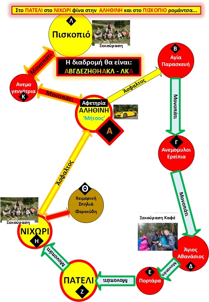 με τους εκτιμώμενους πεζοπορικούς χρόνους (καλόν είναι να γίνουν με Λατινικούς χαρακτήρες και μια μικρή περιγραφή) στις παρακάτω θέσεις:
